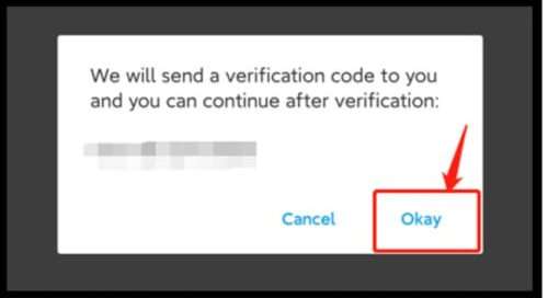 - Il vous demandera alors que nous vous envoyions le code de vérification. Pour continuer, appuyez sur “OK”.