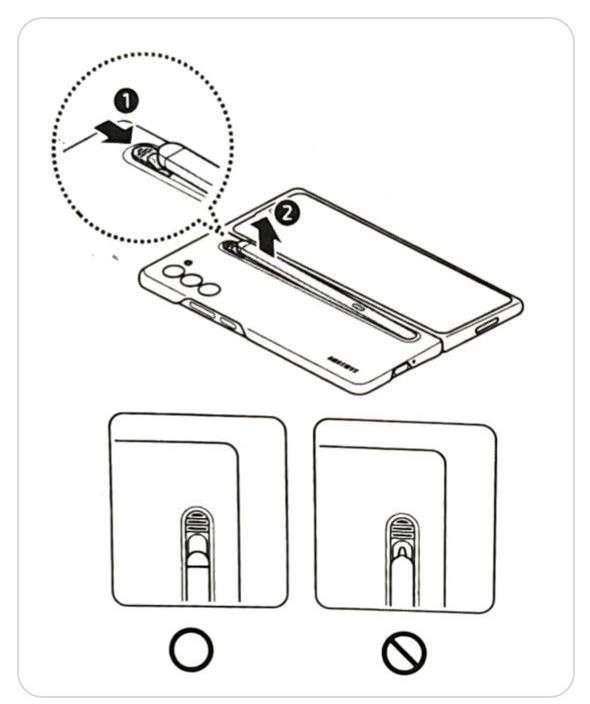 Lors de l’insertion du S Pen dans l’étui, assurez-vous que la pointe/la pointe du S Pen doit être insérée en premier dans l’accessoire.